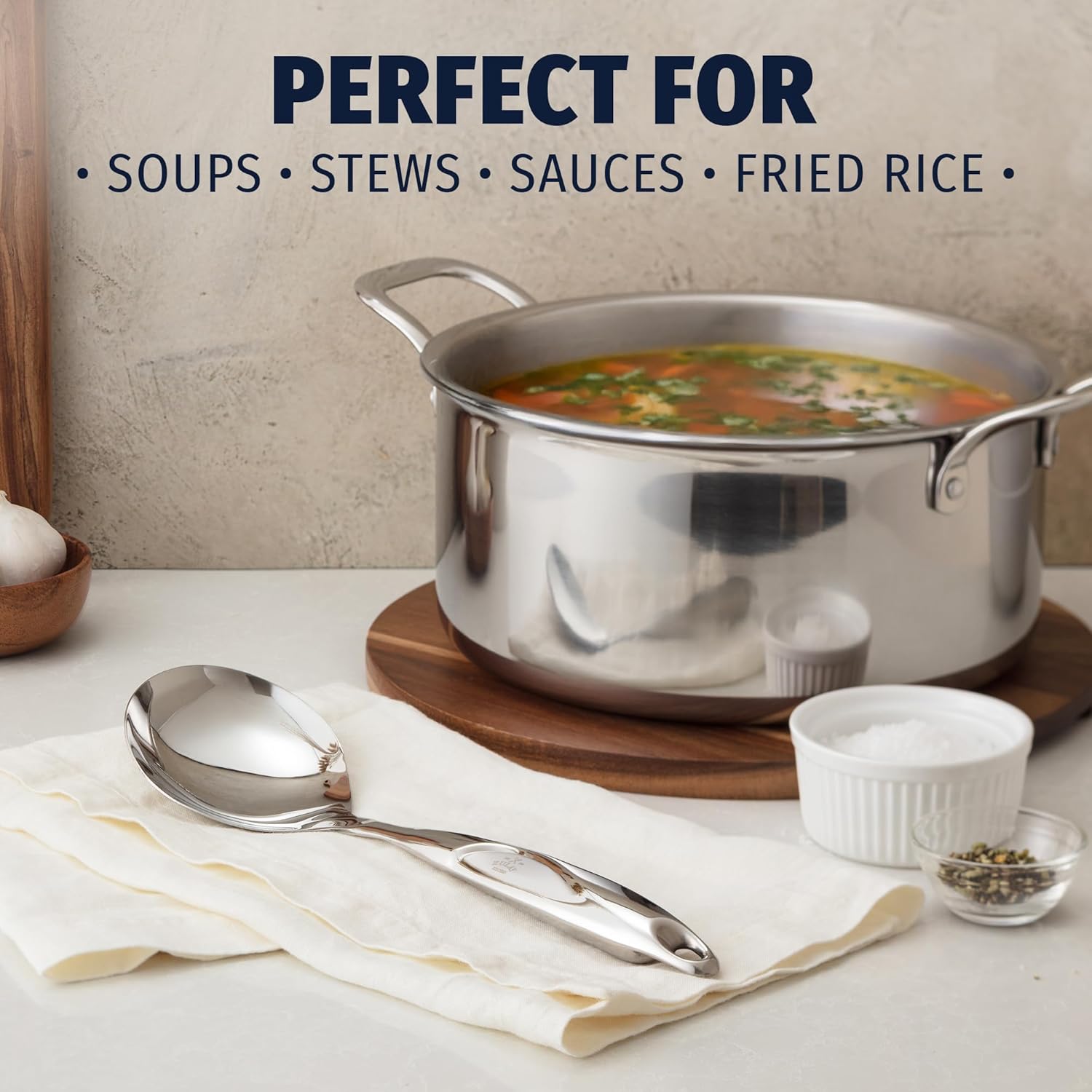 • DURABLE PREMIUM STAINLESS STEEL: Crafted from heavy-duty, food-grade stainless steel with a polished mirror finish. This rust-resistant serving spoon is sturdy, durable, and built to last through years of cooking, serving, and entertaining.